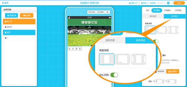 畫廊共有3種不同形式的展現方式,通過“控件屬性”——“控件樣式”——“快速布局”設置。