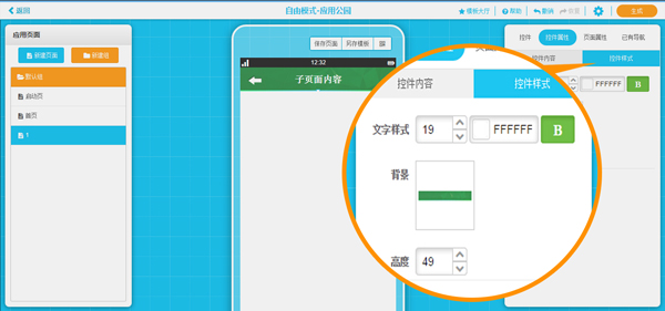2.控件屬性中的控件樣式:對導航欄文字的大小、顏色、粗細進行設置,再設定導航欄的背景以及高度,在模擬器中會實時顯示效果,可對照修改。