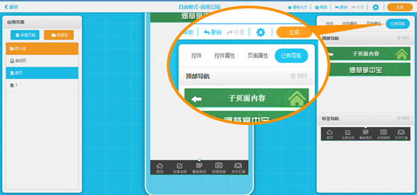 A您只需要在制作頁面右上方的“已有導航”中選擇除了顯示名稱不同外,其他結構大小設計相同的導航,直接拖入需要使用的頁面即可。比如我的“制作首頁”已經有了一個帶返回鍵的歷史導航,我在制作“教程”頁面時,需要一個除了顯示名稱不同外同樣的歷史導航,那我就可以直接在已有導航里,選擇類似導航,直接拖入制作區域即可。
