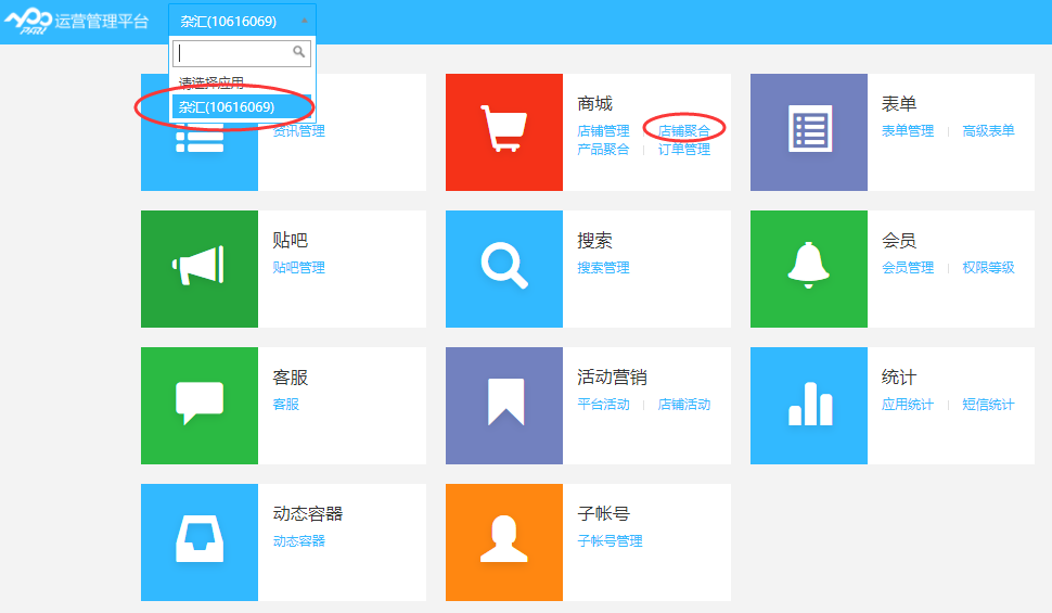 3.在運營管理平臺選中您要選擇“店鋪聚合”。