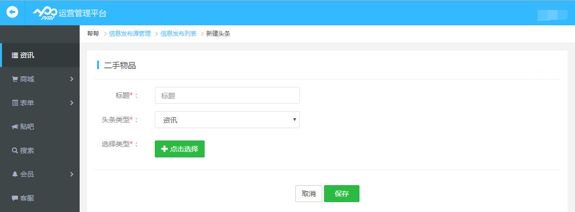 13.設置好后,點擊“新建頭條”,然后填寫標題,選擇類型,方法和畫廊類似。同樣信息發布源的頭條內容最多6條。