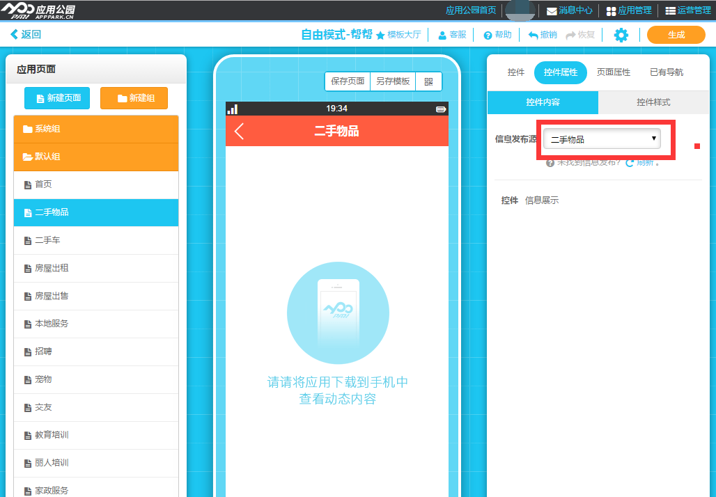 運營者可通過后臺設置來管理用戶發布信息時是否需要付費,并且支持信息發布審核,通過審核的信息才能展現在App中。結合應用公園現有的功能控件,比如電商商城、社交、論壇等,具有超強的拓展性。可打造匯聚全城個人、商家信息的本地服務APP,海量生活信息用戶極速查詢、發布。下面一起看一下制作方法: