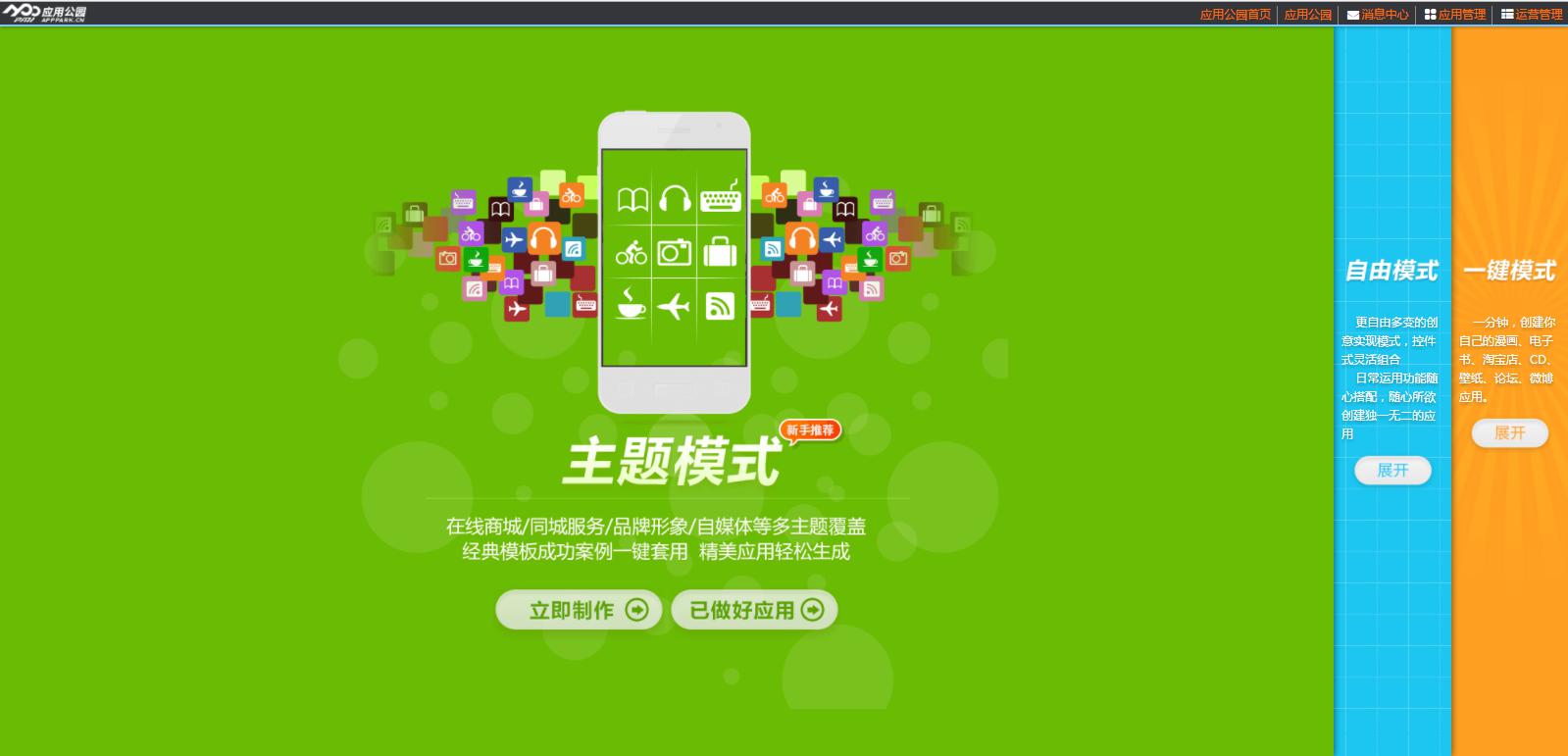 應(yīng)用公園是專業(yè)的手機(jī)APP在線開(kāi)發(fā)制作平臺(tái),無(wú)需編程,純圖形化操作,讓每個(gè)人都能成為手機(jī)APP應(yīng)用的制作者和發(fā)布者。