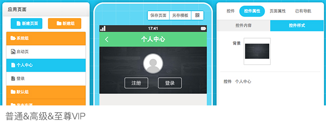 普通VIP及VIP支持布局樣式一,布局二、布局三、布局四為尊VIP專屬布局樣式。使用時,只需在控件樣式中上傳背景及LOGO即可。