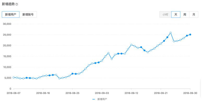 2018年8月7日-2018年9月30日 她face+每日訪問人數(shù)(DAU)