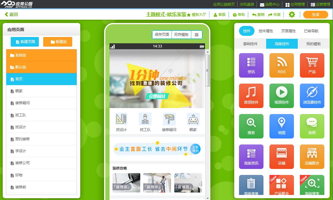 “歐樂家裝”,讓家裝公司擁有自己的移動互聯網平臺,快來應用公園制作使用吧!