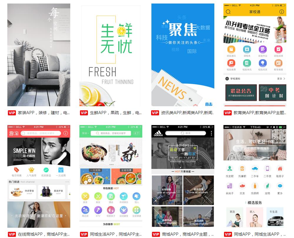 在應用公園,有大量自營電商、網上商城、同城服務(本地生活)、企業品牌、新聞資訊、自媒體、交友聊天等多種類型垂直行業的原生APP主題案例,不需要編程就可直接使用。