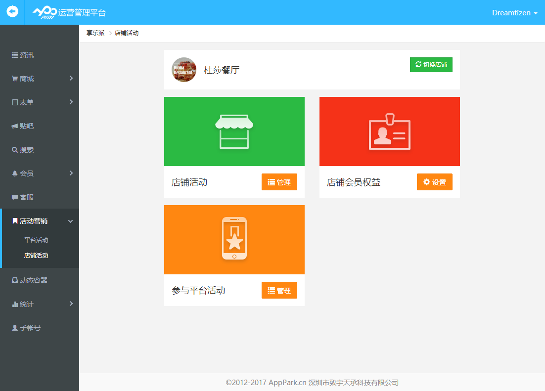 活動制作、活動發布、數據統計、積分管理一應俱全,包含限時折扣、優惠券、滿減、會員折扣、會員積分、會員金幣、團購券、代金券、簽到等促銷工具,支持平臺和店鋪分開設置專屬活動。